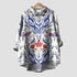 Add a touch of character to your outfits with the Ivana | Oversized shirt with floral print and stylized insects. Its design, inspired by antique engravings, combines symmetry, dynamic blue lines, and brick-red flowers for a result that's both sophisticated and full of personality. The Ivana is a shirt that catches the eye without being over the top.